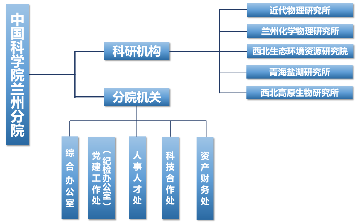 中國(guó)科學(xué)院蘭州分院成立于1954年,是中國(guó)科學(xué)院在全國(guó)9個(gè)分院之一,作為中國(guó)科學(xué)院的派出機(jī)構(gòu),負(fù)責(zé)聯(lián)系在甘肅和青海的院屬科研單位。包括:近代物理研究所、蘭州化學(xué)物理研究所、西北生態(tài)環(huán)境資源研究院、青海鹽湖研究所以及西北高原生物研究所。建院近70年來,蘭州分院在中國(guó)科學(xué)院和中共甘肅、青海省委、省政府的正確領(lǐng)導(dǎo)和親切關(guān)懷下蓬勃發(fā)展,取得了一大批重大科研創(chuàng)新成果,為我國(guó)科技事業(yè)發(fā)展作出了應(yīng)有貢獻(xiàn)。主要包...